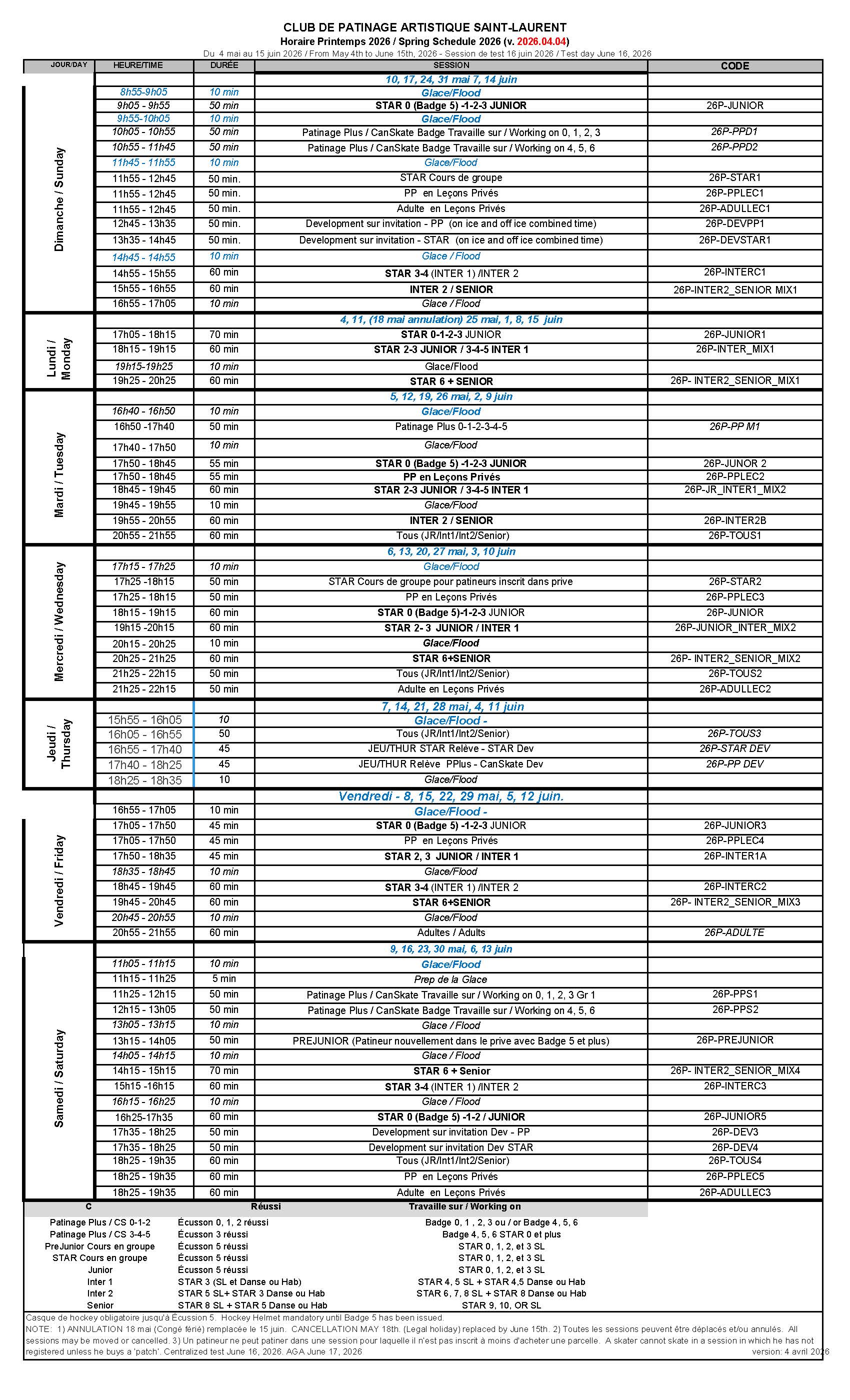 INSCRIPTIONSPour bénéficier des escomptes, le titulaire du compte est responsable de remettre au club par courriel (cpa.stlaurent@gmail.com) toute mise à jour des dossiers 48 heures AVANT l'inscription . Ces informations peuvent être et ne se limitent pas à:té: 30 juin 2019.Documents émis par l'arrondissement pour les familles à faible revenu. Les inscriptions effectuées sans avoir remis les documents obligatoires ne receveront aucun escompte. Conformément aux politiques de l'Arrondissment, aucun ajustement ne sera accordé si la documentation n'est pas remise à temps. La Carte Loisirs de l'arrondissement de Saint Laurent est obligatoire pour la création et la mise à jour de tout compte patineur. Le système de carte loisir de l'arrondissement de Saint Laurent n'est pas lié au système d'inscription du club. Les parents doivent soumettre une copie de toute mise à jour au club au moins 48 heures avant l'inscription. |