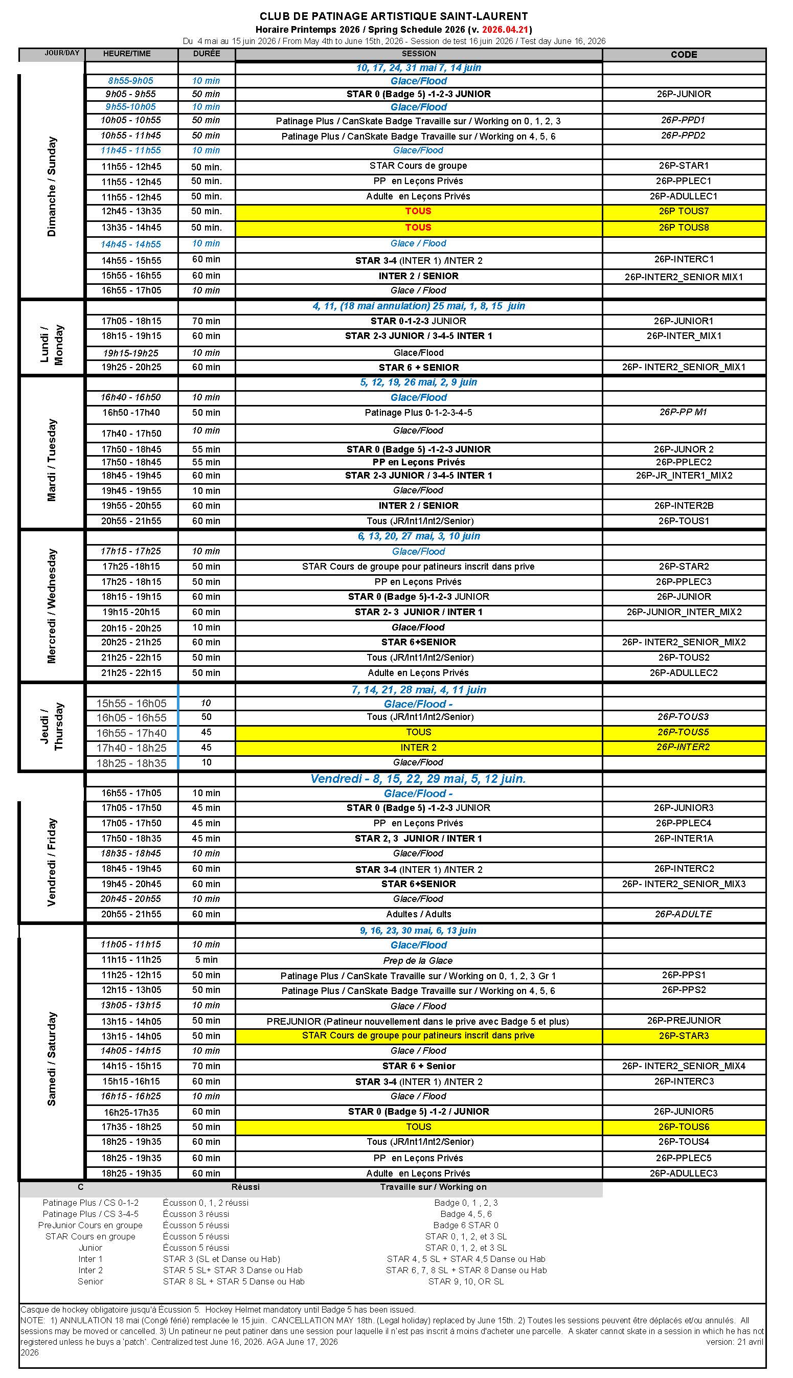 INSCRIPTIONSPour bénéficier des escomptes, le titulaire du compte est responsable de remettre au club par courriel (cpa.stlaurent@gmail.com) toute mise à jour des dossiers 48 heures AVANT l'inscription . Ces informations peuvent être et ne se limitent pas à:té: 30 juin 2019.Documents émis par l'arrondissement pour les familles à faible revenu. Les inscriptions effectuées sans avoir remis les documents obligatoires ne receveront aucun escompte. Conformément aux politiques de l'Arrondissment, aucun ajustement ne sera accordé si la documentation n'est pas remise à temps. La Carte Loisirs de l'arrondissement de Saint Laurent est obligatoire pour la création et la mise à jour de tout compte patineur. Le système de carte loisir de l'arrondissement de Saint Laurent n'est pas lié au système d'inscription du club. Les parents doivent soumettre une copie de toute mise à jour au club au moins 48 heures avant l'inscription. |