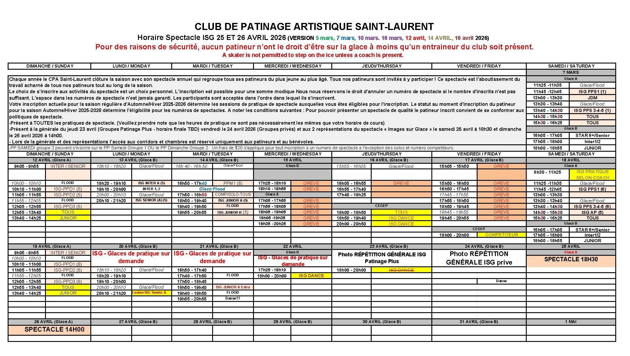 You are responsible to provide copies of all updated information via email (cpa.stlaurent@gmail.com) 48 houres BEFORE registration: