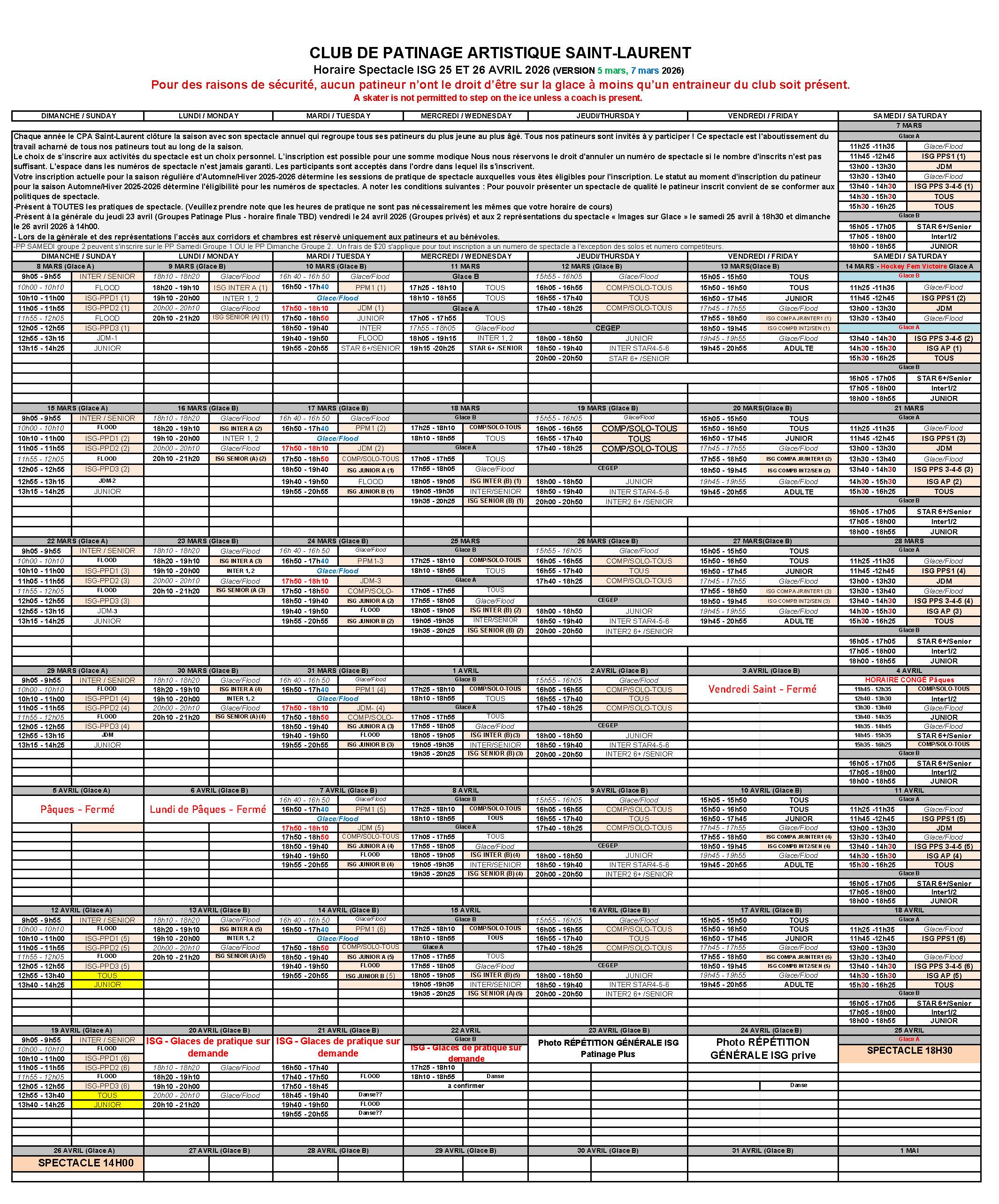 You are responsible to provide copies of all updated information via email (cpa.stlaurent@gmail.com) 48 houres BEFORE registration: